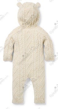 One Piece 1 Piece Hoodied Hooded 3-D Ears Pants Long Sleeves Cable Knit Button Placket Leg Snap