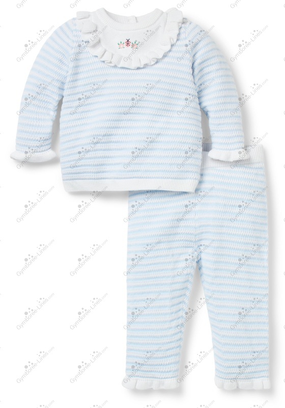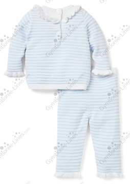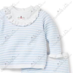 Two Piece 2 Piece Long Sleeve Button Back Ruffled Placket Striped Pants Elastic Waistband Pull On Ladybug Lady Bug Flower Embroidered