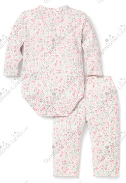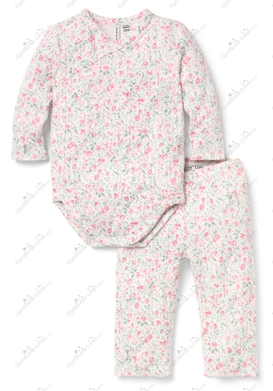 Two Piece 2 Piece Top Shirt Wrap Kimono Snap Crotch Pants Leggings Floral Flower Pull On Elastic Waistband Pointelle Long Sleeve
