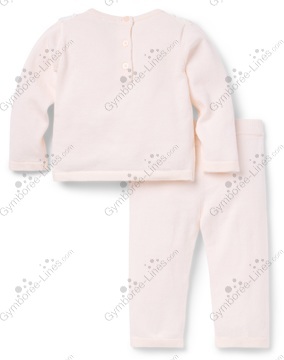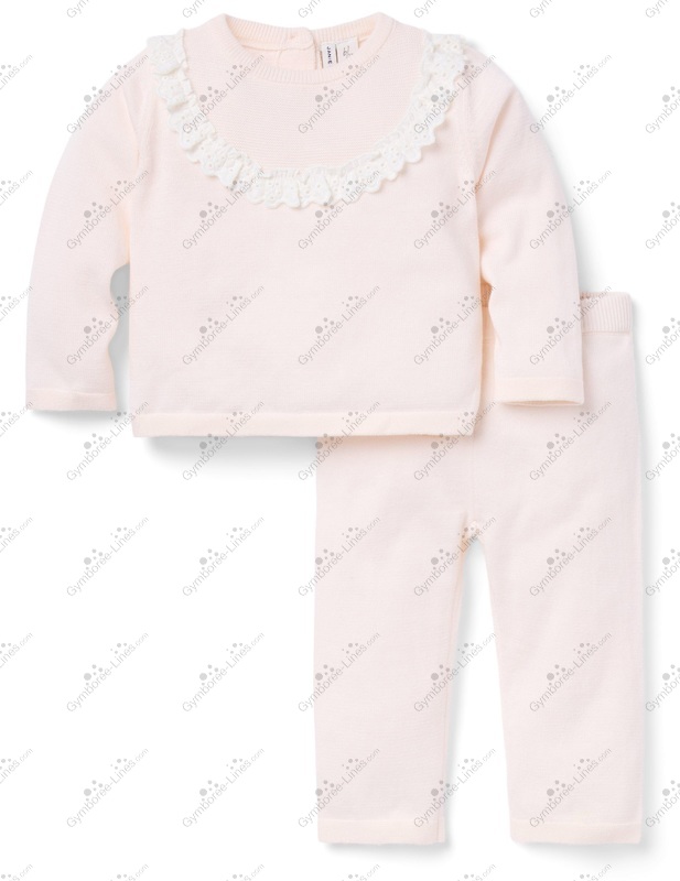 Two Piece 2 Piece Long Sleeve Button Back Ruffled Placket Pants Elastic Waistband Pull On Eyelet Trim Crochet Trim