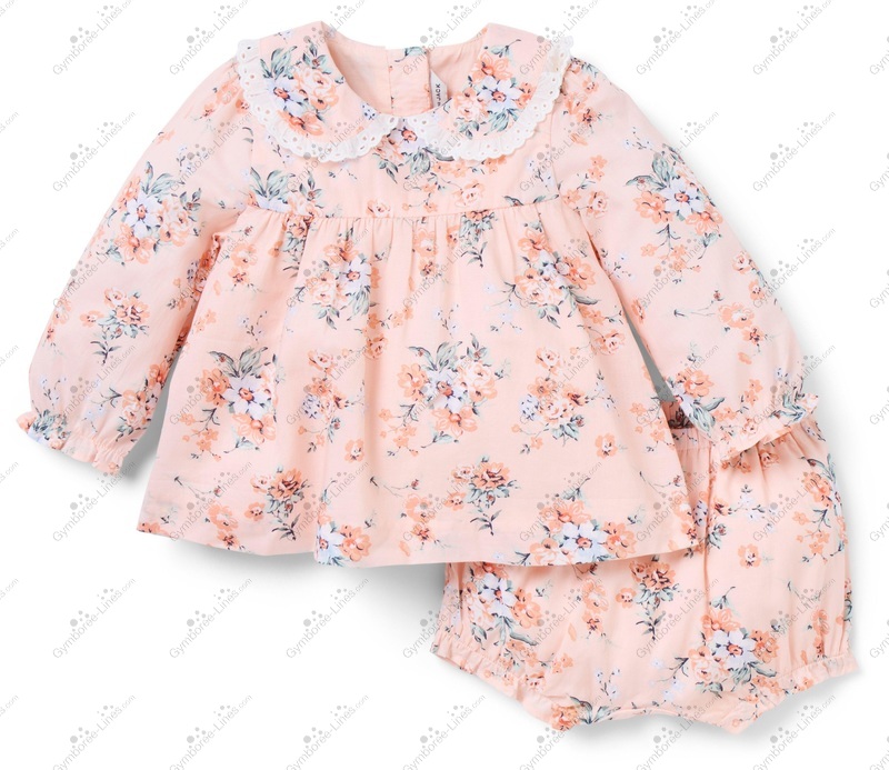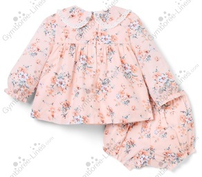 Two Piece 2 Piece Long Sleeve Floral Flower Lace Collar Peterpan Collar Bloomers Diaper Cover Button Back