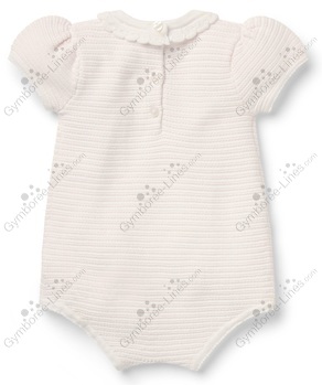 One Piece 1 Piece Romper Bubble Collar Textured Striped Pleated Button Bac Snap Crotch Crochet Collar