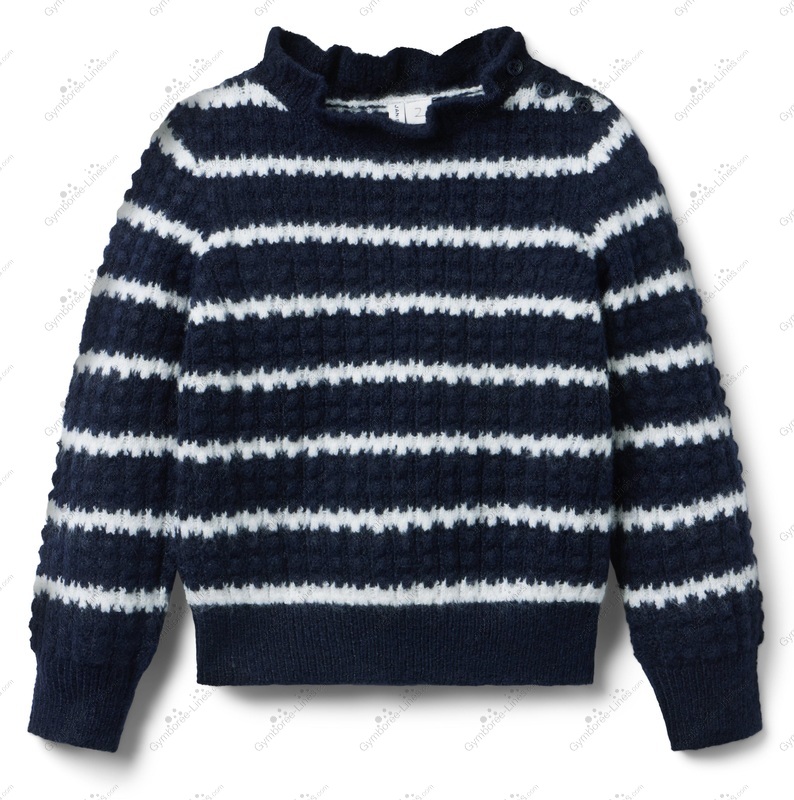 Top Sweater Long Sleeves Striped Ruffled Collar Pullover Tween Textured Nautical Sailor