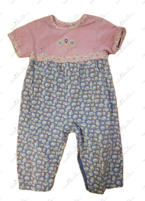 Gymboree Rainbow Tag PBYG No Date RN# AND CA# Short Sleeves Long Legs One Piece Romper Lavender Blue Allover Floral Print Orchid Pink Embroidered Flowers Photo Credit Anonymous