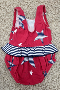 Gymboree Rainbow Tag c1998 Red Star Print Navy Blue Stripes Skirted Ruffle One Piece Swimsuit Bathing Suit Photo Credit Danielle Dail