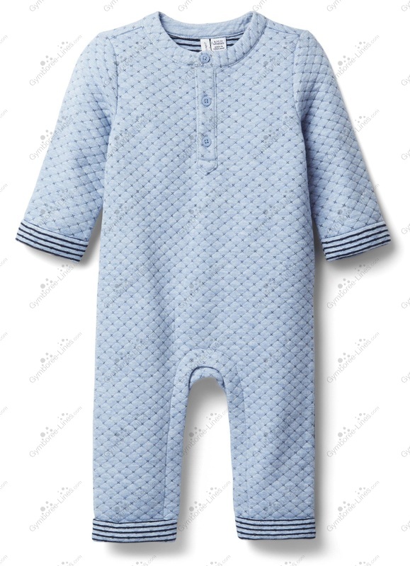 One Piece 1 Piece Long Sleeves Cuffed Snap Crotch Button Placket Henley Quilted Pants Romper Layette Newborn