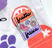 Shorts with a polka-dot yoke and allover fruit print legs. frutta fresca patch on left leg