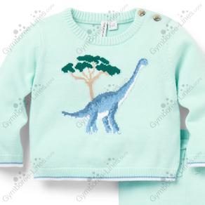 Two Piece 2 Piece Set Sweater Long Sleeve Pullover Button Collar Button Sleeve Dinosaur Stegosaurus Tree Tipped Pants Pull On Elastic Waistband