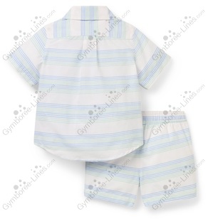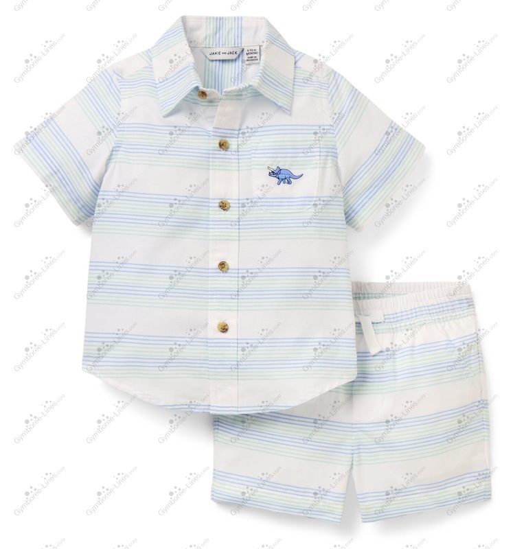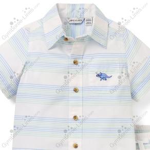 Two Piece 2 Piece Striped Collar Button Up Shorts Elastic Waistband Pull On Embroidered Dinosaur Stegosaurus Oxford Shirt Top Cabana