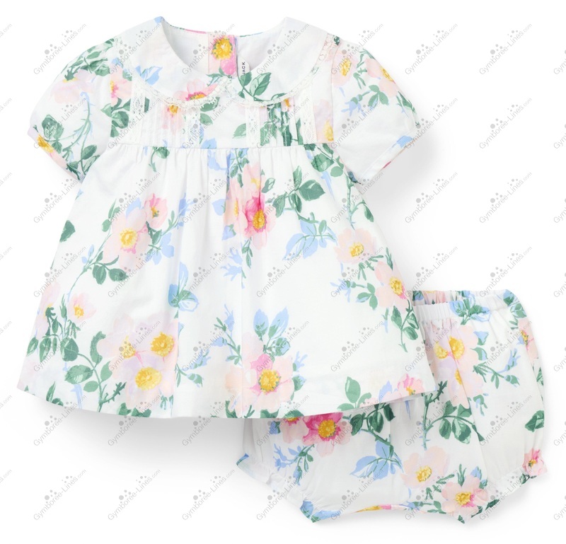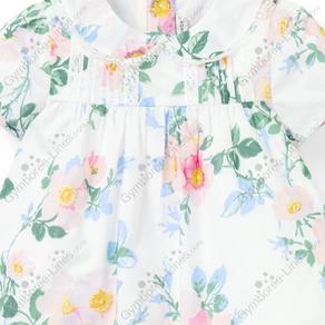 Two Piece Set 2 Piece Set Top Shirt Blouse Peterpan Collar Peter Pan Collar Short Sleeve Bloomers Shorts Elastic Waistband Pull On Pintucked Pleated Easter Floral Flower