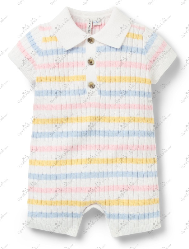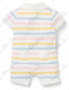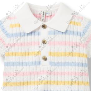 One Piece 1 Piece Striped Sweater Collar Snap Crotch Button Placket Polo Textured Cable knit Easter Spring