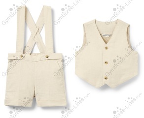 Two Piece Set 2 Piece Vest Sleeveless Button Up Shorts Cuffed Pockets Suspenders Easter Spring Suit Dressy Linen Elastic Adjustable Straps