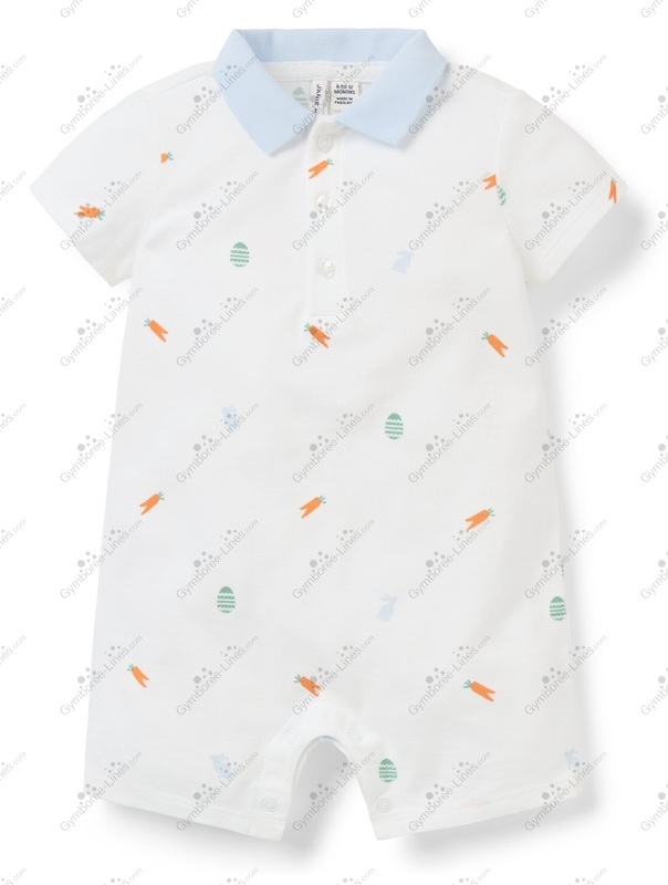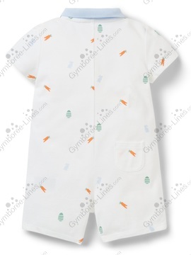 One Piece 1 Piece Short Sleeve Polo Rugby Collar Button Placket Easter Easter Eggs Bunny Bunnies Rabbit Snap Crotch Romper Bubble Embroidered