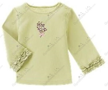 Top Shirt Tee Long Sleeve Applique Embroidered Flower Ruched Sleeve Snap Neck Snap Collar Ruffle Sleeve Bow