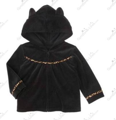 baby girl - jacket - long sleeve cat hoodie hooded black velour zip up
