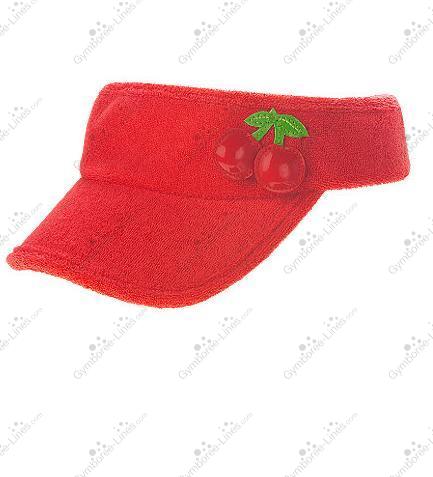 What a sweet sight! Our plush terry visor lets her see all the way down the beach with a boldly fashionable color and faux patent leather appliqué cherries.