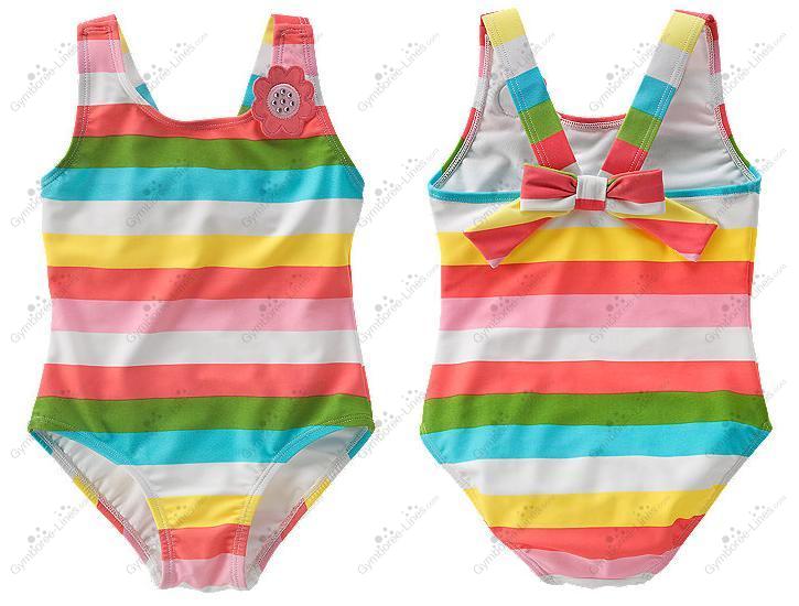 kid girl - swimwear - one piece swim suit bow flower stripe coral pink blue dream