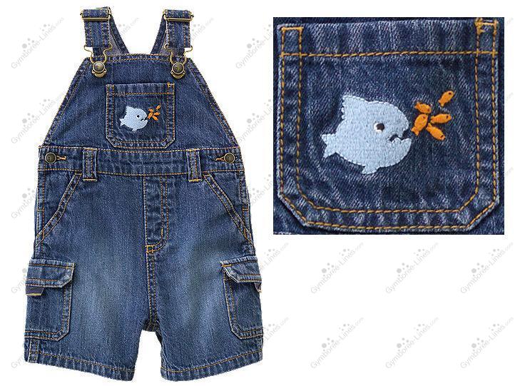 layette boy - one piece - sleeveless overalls shortall fish denim