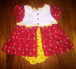 Gymboree Rainbow Tag c1998 summer bouquets in lovely colors One Piece Dress Attached bloomer Red Yellow Navy Blue White Floral Ruffle Collar Photo Credit Michelle Denise Baker