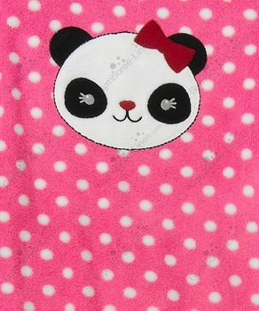What a pretty panda bear! Our dot print pajama gown features a cute panda design made from fuzzy appliqués and embroidery. Elasticized ruffle cuffs complete the fleece style.