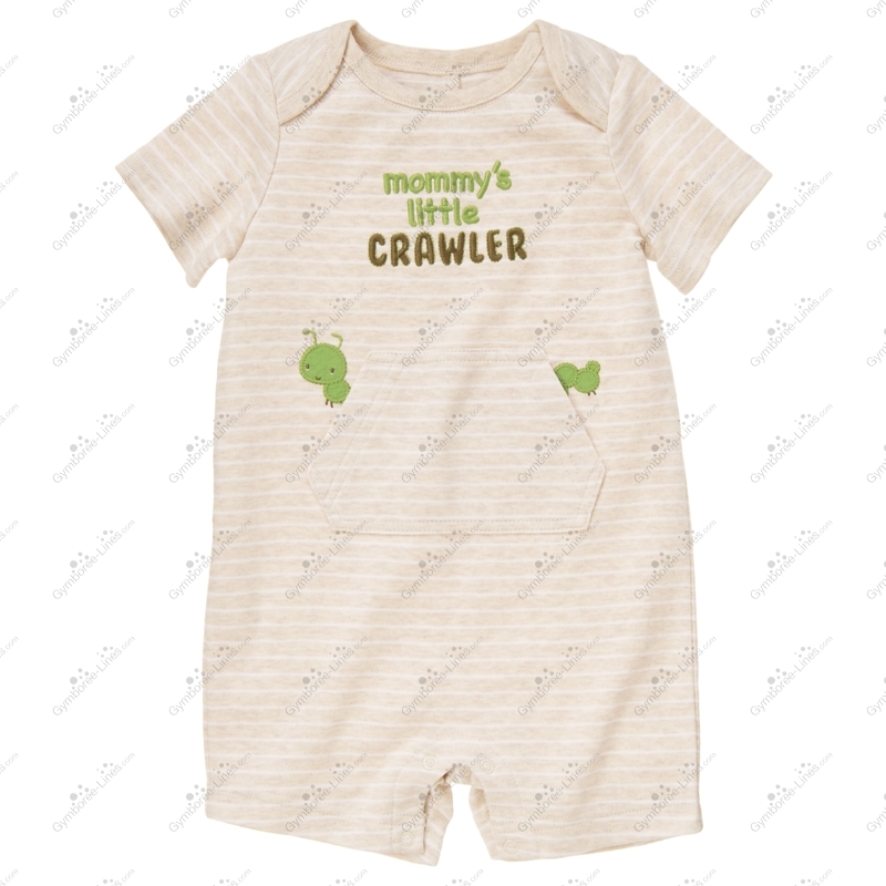 Mommy's Little Crawler is comfy and cute in our soft shortie one-piece. Playful caterpillar appliqué crawls from a kangaroo pocket under fun embroidered lettering.