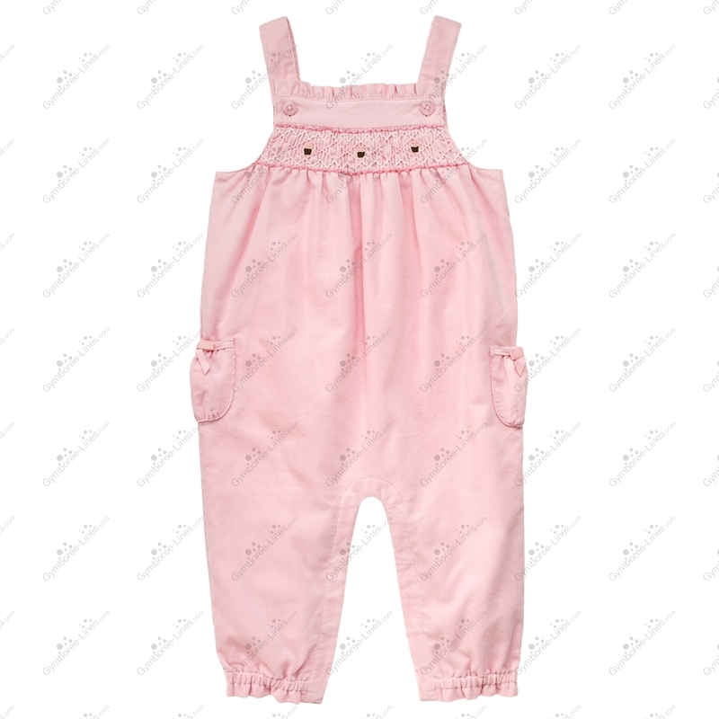 Indulge your little one with delicate luxury. Hand-smocking, French knot embroidered cupcakes and ruffling lovingly detail our soft cotton fine-wale corduroy overall. Grosgrain satin bows and side ruched pockets offer sweet style. Fully lined in soft cotton jersey for exceptional comfort and warmth. Adjustable button strap design and snaps underneath assist with dressing.