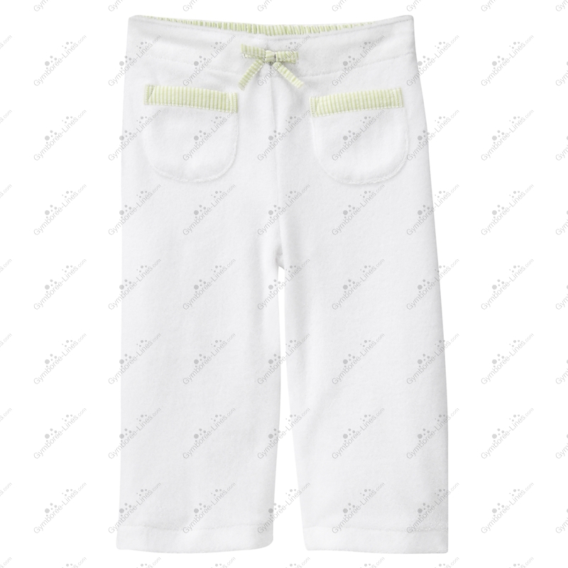 Soft and comfortable. Sweet seersucker pocket trim and waist bow decorate our knit terry crop pant. Crafted in soft cotton blend terry for exceptional comfort. Pull-on design assists with dressing.