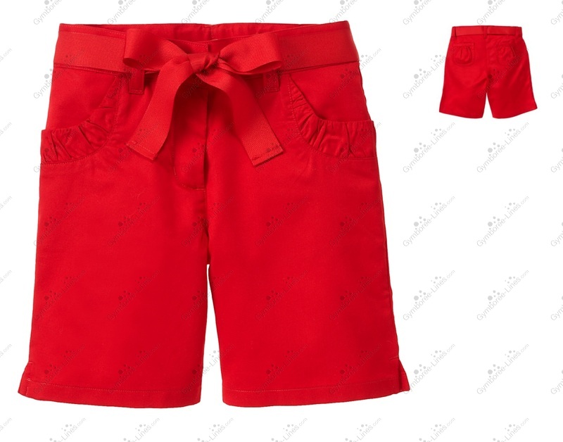 Vibrant style. Our soft cotton sateen Bermuda short is presented with grosgrain ribbon belt and hem vents. Ruched front and back pockets finish the crisp look. Zip fly with button closure assists in dressing. Adjustable waist feature is available for sizes 18-24 months to 12.