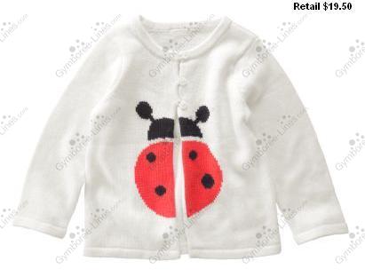 Baby Girl - Sweater - Long Sleeve Cardigan Three Button Ladybug White