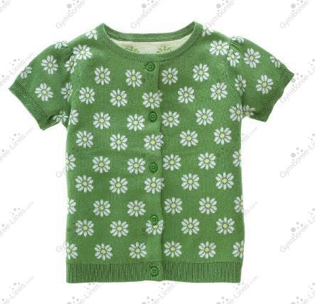 Girl - Sweater - Short Sleeve Cardigan Button Up Daisy Print Ivy Green