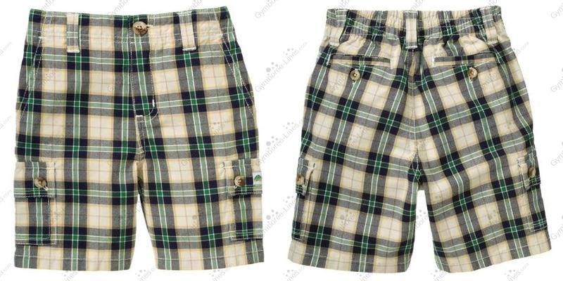 Preppy Madras plaid. Our soft cotton canvas plaid short features traditional styling with front pockets, cargo pockets and buttoned back pockets. Zip fly with button closure assists in dressing. Adjustable waist feature is available for sizes 18-24 months to 8.