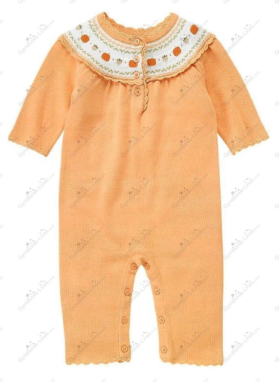 Harvest time is here with our sweet Fair Isle sweater one-piece in soft combed cotton. Scalloped trim creates an heirloom-quality feel. Buttons in front and underneath assist with dressing.