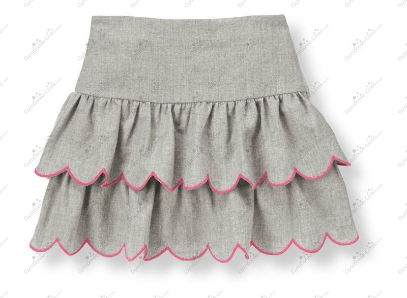 Lovely scalloping is sweetly presented on our tiered ruffle skirt. Crafted in soft cotton twill with full lining for exceptional comfort. Invisible side zipper and adjustable waist feature available for sizes 18-24 months to 12.