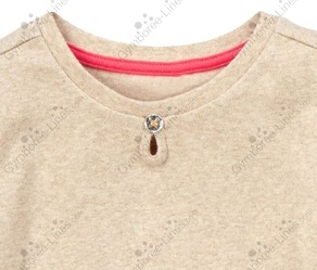 Soft and comfy long sleeve tee is fancied up with a keyhole and sparkly gem button.