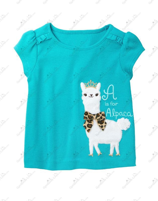 Her sweet and fuzzy alpaca friend is looking so glamorous in a sparkly tiara and leopard bow. Bright tee is finished with ruffles at the shoulder.