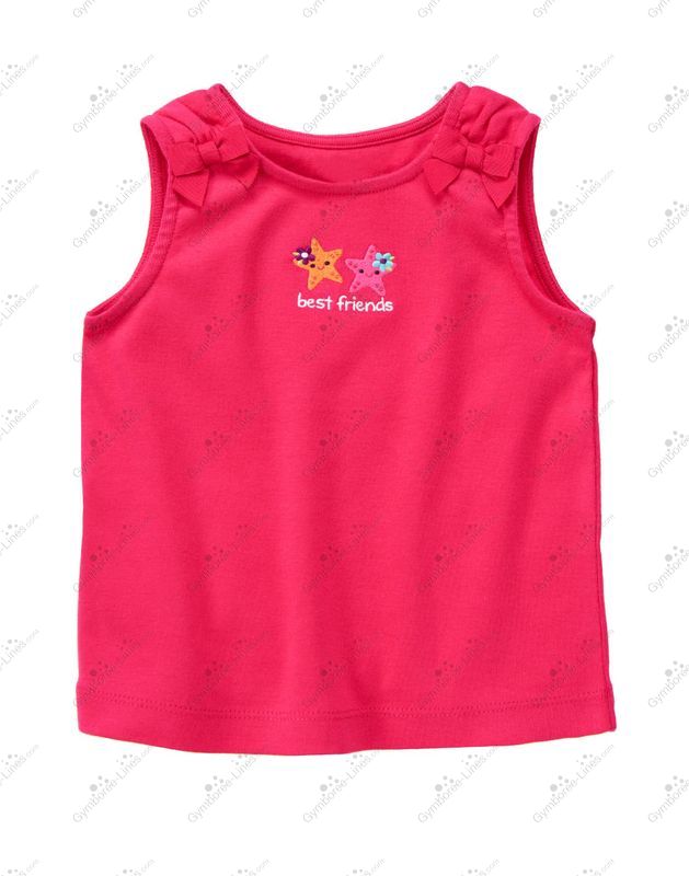 Sweet little embroidered starfish are Best Friends on our bright and summery tank! Soft cotton rib design is finished with grosgrain ribbon bows on the shoulders.