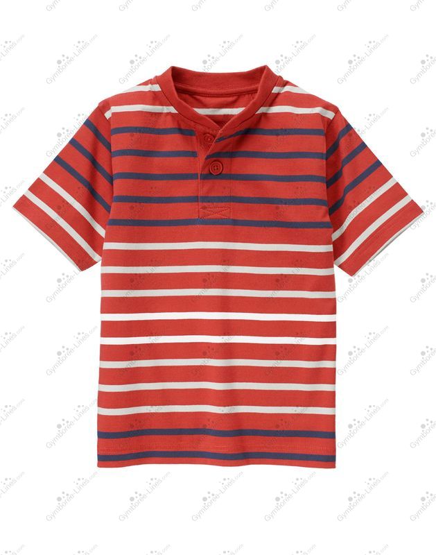 Our cool henley tee features bright stripes for vibrant style. Ribbed neck and button placket finish the casual cotton jersey design.