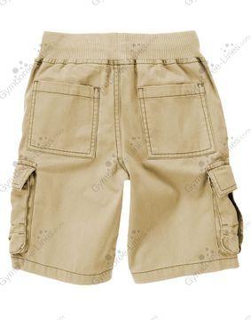 Drawstring cotton cargo short with comfy ribbed waist and pockets.
