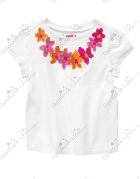 Top Shirt Tee Short Sleeve Garland Flower Lei Necklace Hawaiian Island Glitter Sparkle