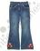 So fashionable with felt flowers above the hem, our jean features flare design and stylish slight fading in front. Permanent buttons on the flowers add extra detail.