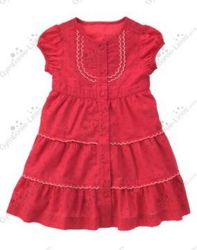 Dress Short Sleeve Tier Button Front Scalloped Yoke Banded Sleeve Banded Cuff Shirred Layered Dot Dotted Pindot Red Swiss Dot Magenta Pink Fuscia Photo Credit Susan Daily