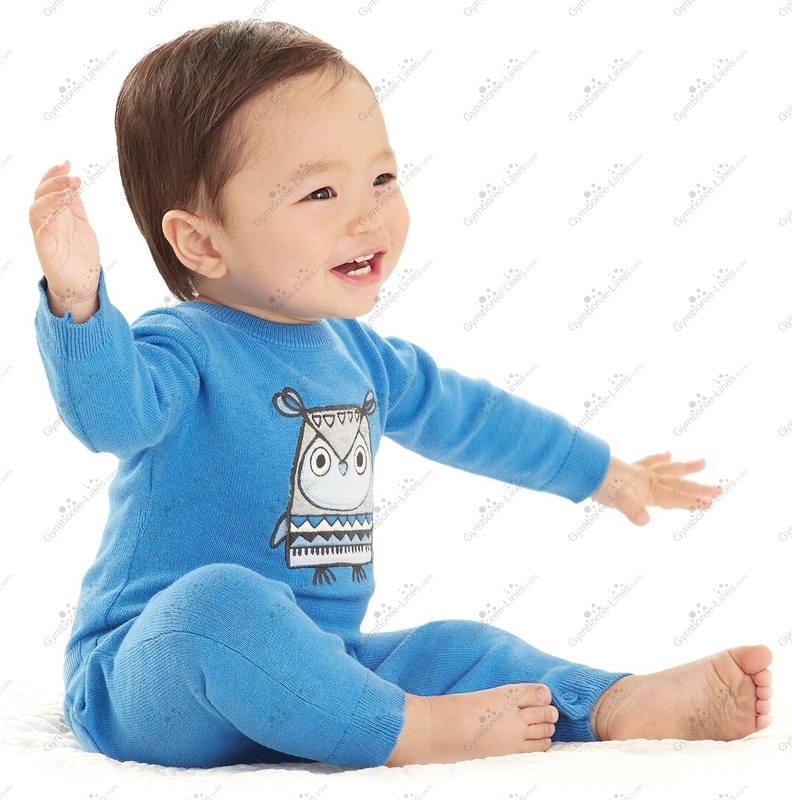 One Piece 1 Piece Long Sleeves Button Crotch Button Neck Button Collar Owl Birdie Sweater Applique