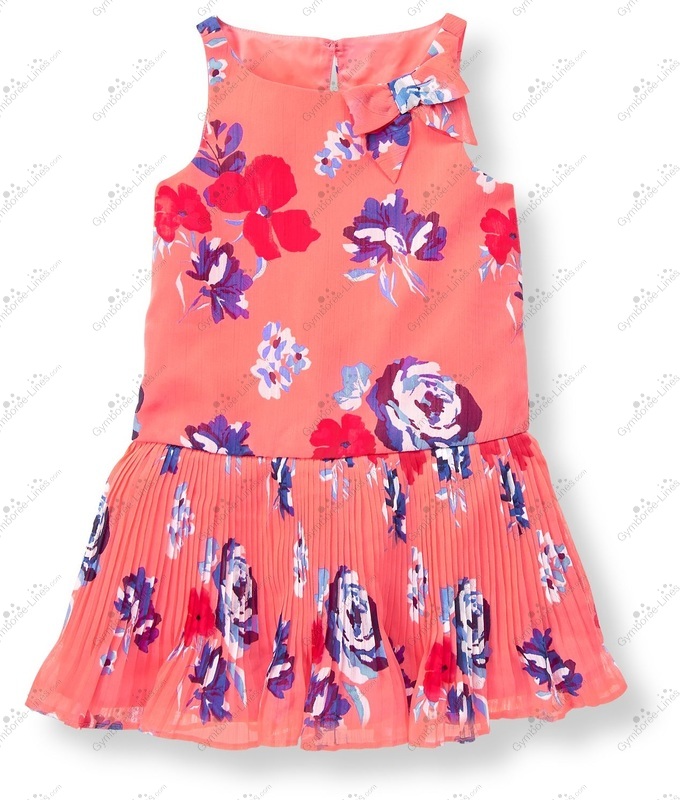 Vibrant floral print on swingy chiffon is perfect for parties. Dress is detailed with sweet pleats and permanent bow accent.