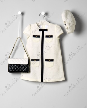 Dress Short Sleeve Colorblock Color Block Front Welt Pockets Bow Bouclé Gold Tone Buttons Lined Bloomers Diaper Cover Button Back