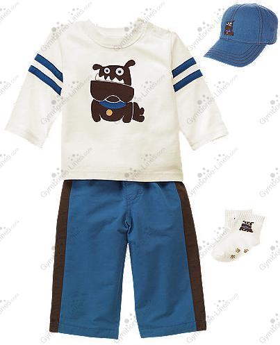 Little bulldog is a boy's best friend! For a fun style, try our tee with playful appliqué in front. Double stripes at the sleeves add authentic detail.