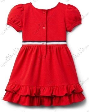 Dress Short Sleeve Cap Sleeves Ruffled Gold-Tone Buttons Ruffled Hem Button Back Bloomers Diaper Cover