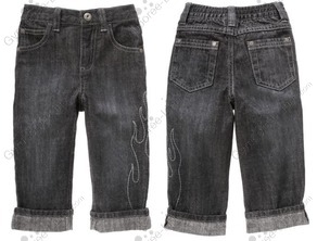 Pants Denim Jean Flame Fire Cuffed 5-Pocket