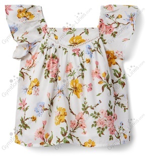Top Shirt Blouse Floral Flower Flutter Sleeve Short Sleeve Button Back Cutwork Trim