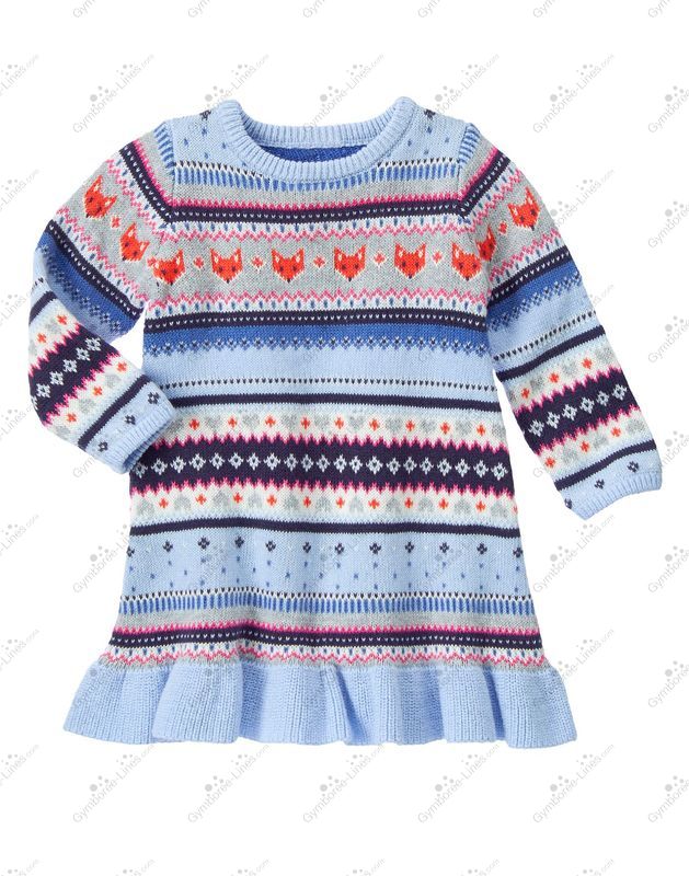 Gymboree Orange Tag c2015 Blue Fair Isle Sweater Dress Orange Foxes Navy Blue Gray Grey White Pull On Sky Blue