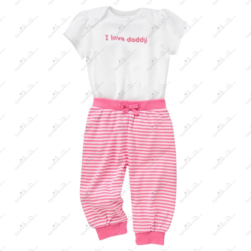 Show her Love for Daddy! Cute and comfy bodysuit features pretty lettering in embroidery and puff sleeves. Stripe banded cuff legging in soft cotton completes the adorable look for your new baby girl.
